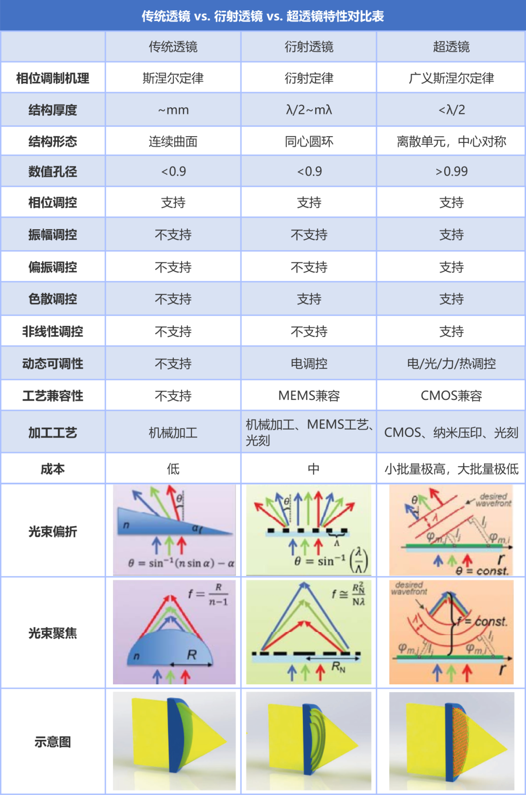2、超透镜、衍射透镜、传统光学透镜