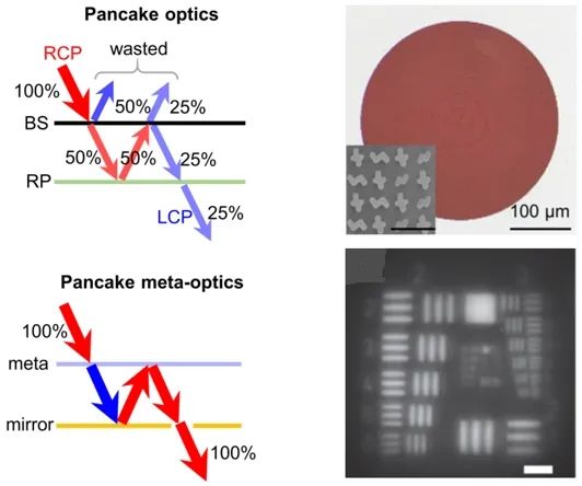 2022年,南京大学的李涛教授团队基于光子的自旋霍尔效应设计的双面超透镜,可替代Pancake光学中的传统透镜,可以改善光损严重的问题,将光能量利用率提升到100%。